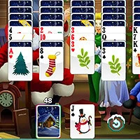 Tripeaks Solitaire med jultomten. Ta bort alla kort genom att vÀlja kort som Àr ett steg högre eller lÀgre Àn det öppna kortet lÀngst ner. Klicka pÄ den stÀngda högen för att fÄ ett nytt öppet kort. Samla nycklar för att lÄsa upp den högra kolumnen.