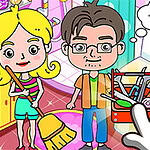 En ung familj har precis flyttat till stan och de litar pÄ att du kan förvandla deras slitna hus. Rengör damm och rensa bort allt stök frÄn varje rum, tvÀtta och gör fint, sortera och ordna klÀder, laga trasiga möbler och saker, och fixa till varje del med snygg inredning. Ta dig an en uppgift i taget medan du ÄterstÀller, dekorerar och organiserar hela hemmet och gör det frÄn ett kaos till ett varmt och inbjudande stÀlle att bo pÄ.